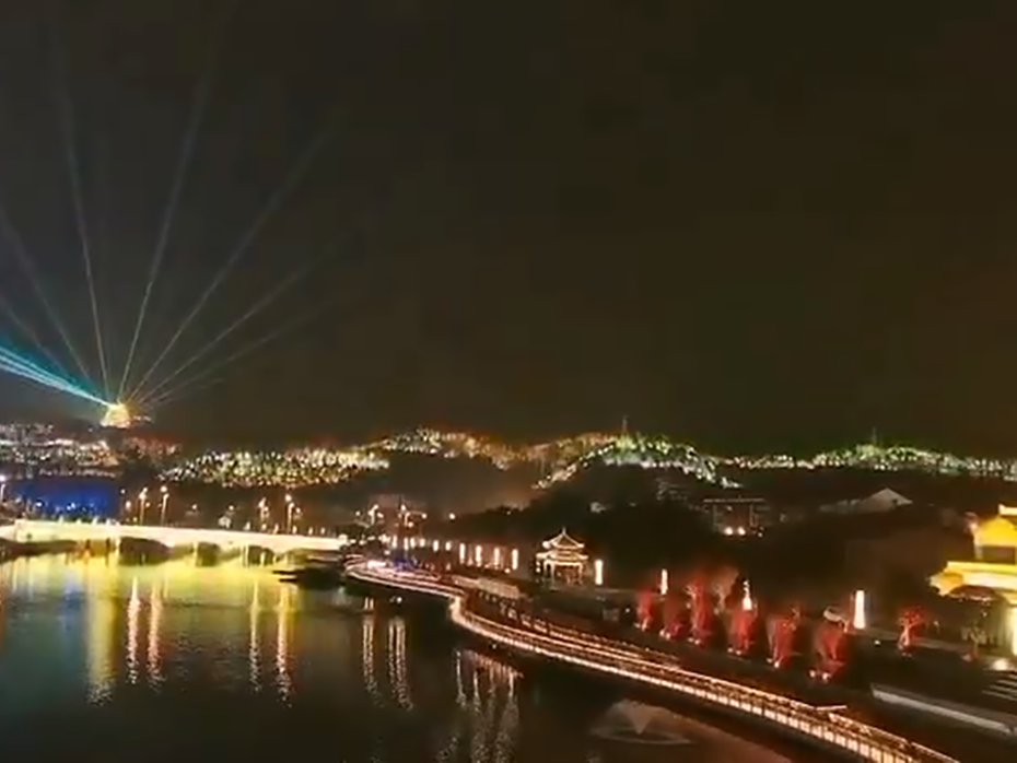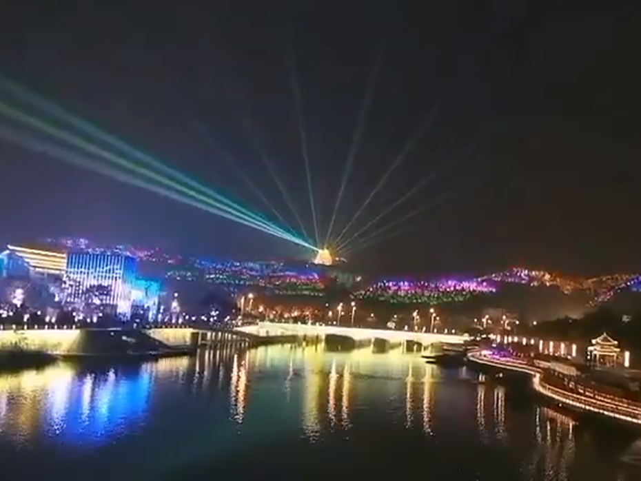 四川遂宁70华诞灵泉寺及周边山体灯光秀