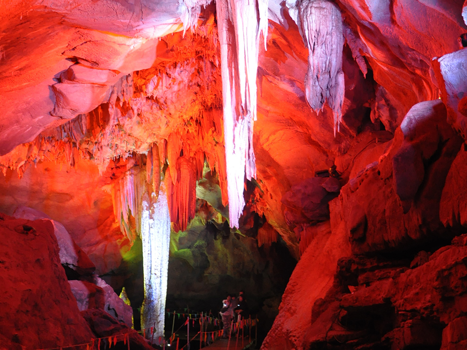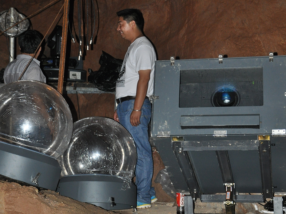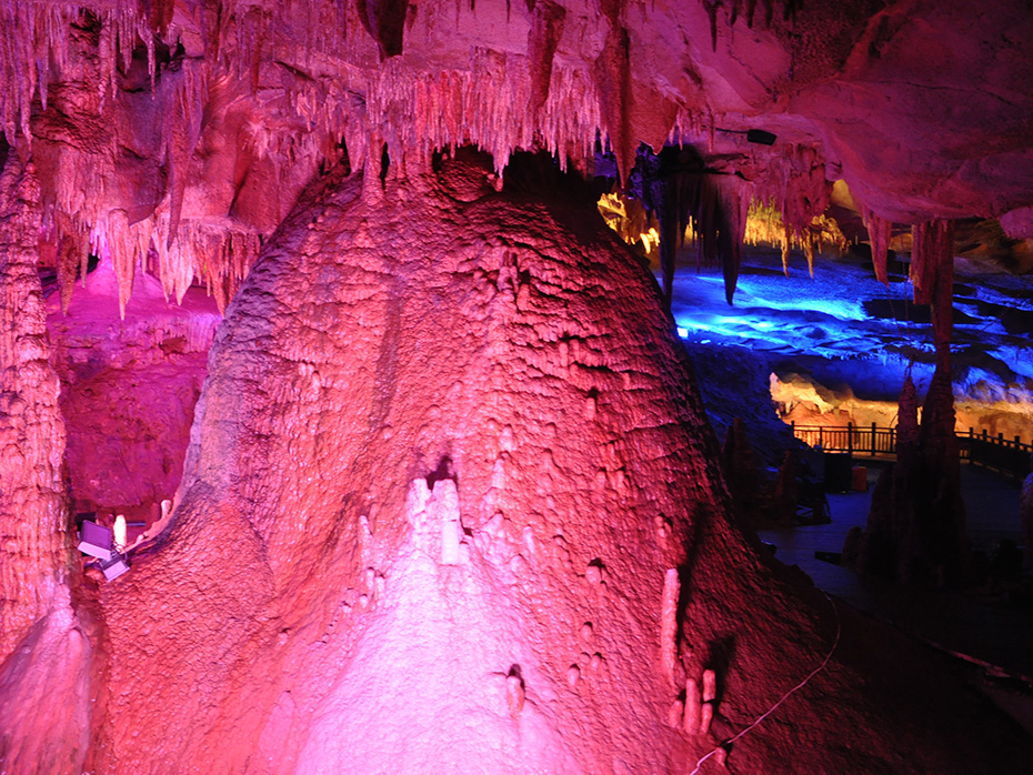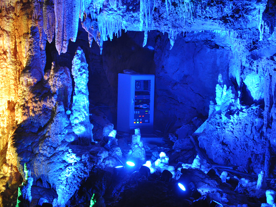 万年神农宫溶洞景观亮化项目控制系统设计,公共广播、视频监控、配电系统及灯光控制,提供1500W电脑灯防护罩及松下16K投影机室外防护罩。
