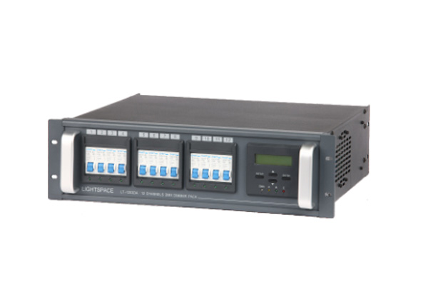 LT-1203DA 12路数字调光器。可安装于19”标准机柜和航空箱,3U机箱设计,适用于小型演播厅,中小型娱乐场所及建筑照明,也可作为流动设备。MCB过载?;?,内部设有智能温控风扇,每路可设为可控直通,4条调光曲线可供选择,后面板可选多种插座形式。