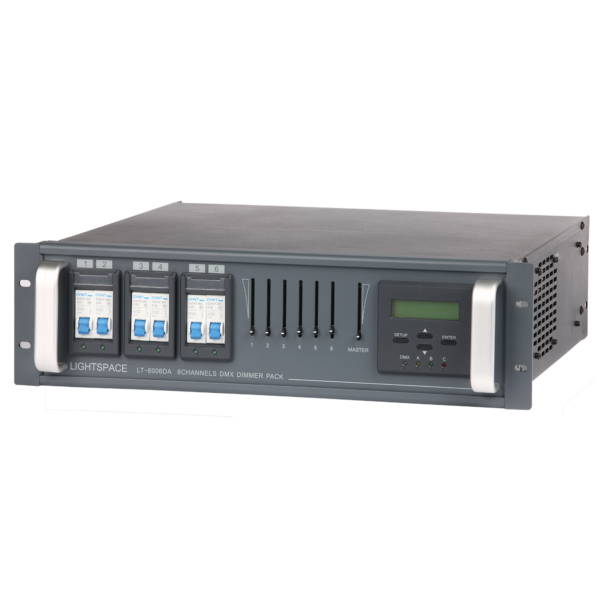 LT-6006DA 6路数字调光器??砂沧坝?9”标准机柜和航空箱,3U机箱设计,适用于小型演播厅,中小型娱乐场所及建筑照明,也可作为流动设备。每路设有电位器,可独立操作和使用。MCB过载?;?,内部设有智能温控风扇,每路可设为可控直通,4条调光曲线可供选择,后面板可选多种插座形式。