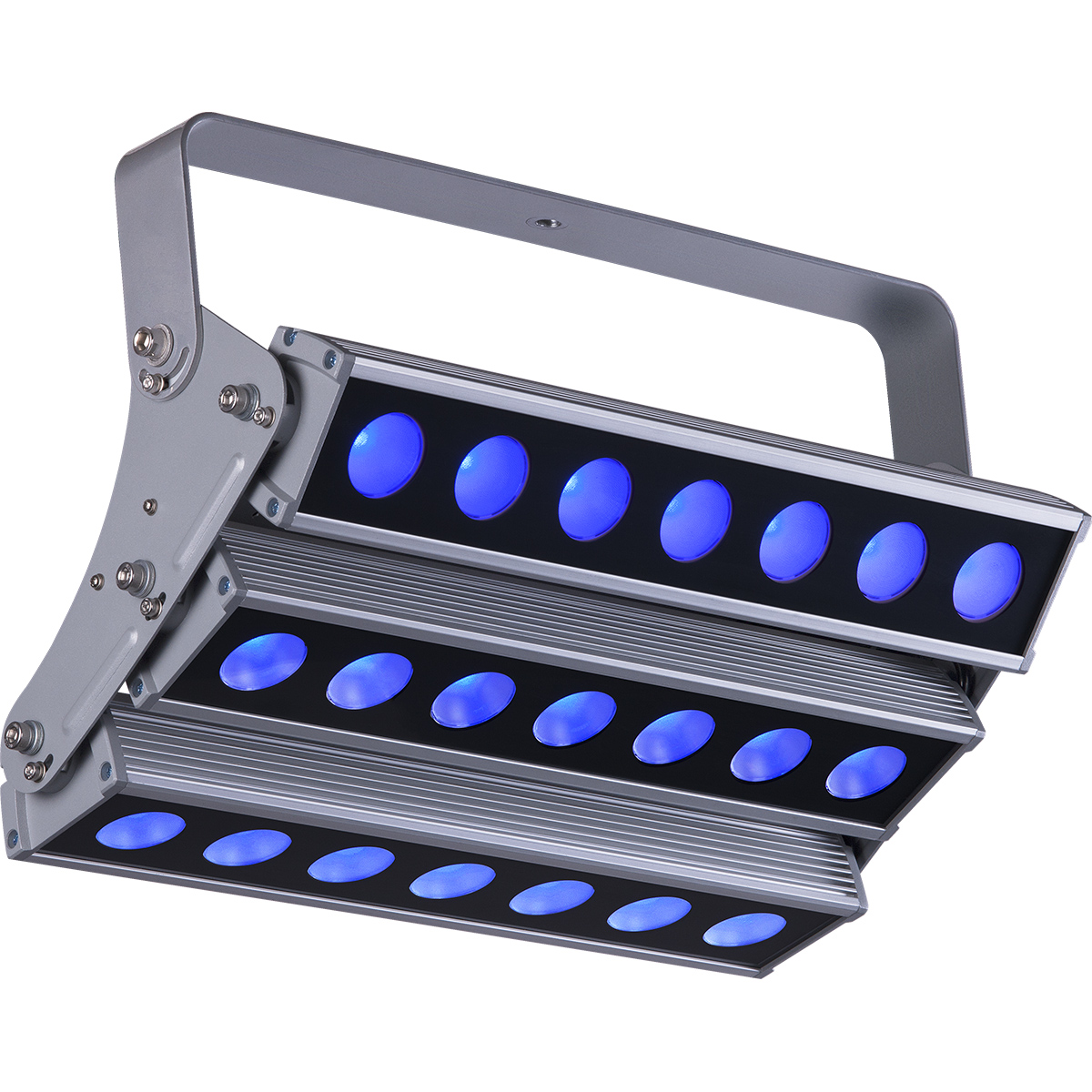 • 产品概要: LT-C3821彩色天幕灯采用CREE大功率XMLCOLOR彩色4合一光源,透镜选用LEDIL的混光透镜,采用三组不同角度透镜作分别照射高中低位置,保证画面光的均匀;适合于剧场的天幕,高大厅堂及演播室等场所的背景染色,色彩炫丽,混合均匀。