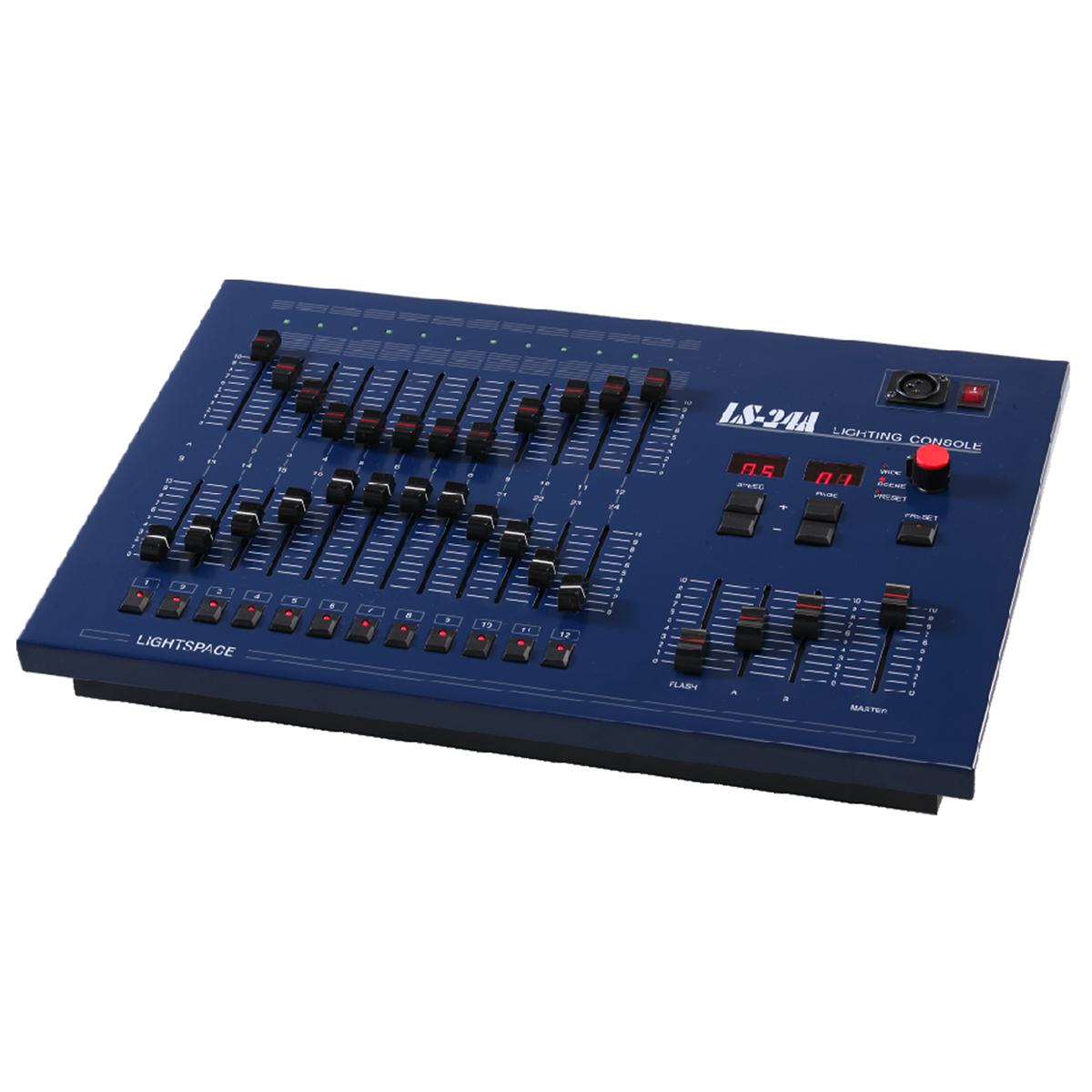 LT-24数字调光台,每个通道设有独立的推杆,可控制512回路,适用于中小型演出场所、演播厅及流动演出。采用大屏幕,高亮度背光液晶显示屏;全中文汉字显示,中文菜单提示操作。操作方式有手动方式和自动方式,适合于各种类型的操作人员。