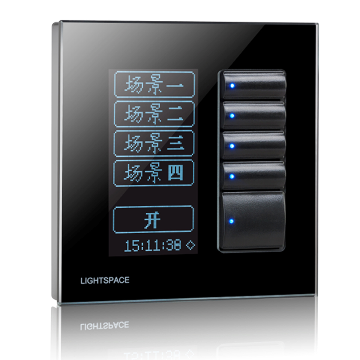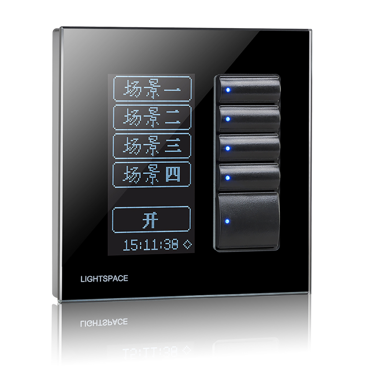 LT-215A 5按键多功能控制面板。配置OLED显示屏,具有提示及控制多组场景,内置实时时钟,主要应用于智能环境照明,可与本公司生产的各类智能调光器组成分布式智能灯光控制系统??刂泼姘宓陌醇赏ü砑斜喑?,可选的工作模式有区域模式(自锁)和场景模式(互锁),适用于剧场观众席、智能家居及办公照明。
