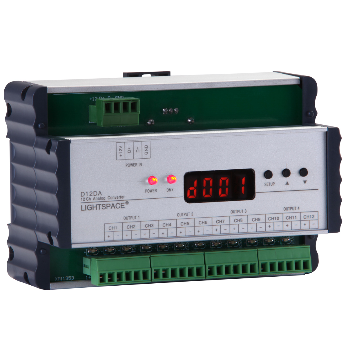 • 产品概要: D12DA 12路导轨式0-10V模拟输出模块是一款提供数字/模拟转换功能的12通道0~10V输出模块,输出总线可选LT-Net或DMX,控制器采用DIN 导轨式安装,可方便的安装于配电箱(柜)中,通过RS-485 总线,模块可与场景面板、传感器等设备连接,适用于智能家居、办公楼、学校、体育场馆、建筑外景等场合的照明控制。